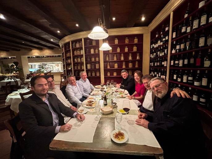 There is a table in the far left reaches of Cantinetta Antinori which, over the course of three separate occasions between October and November of this year, served as the gathering place for the kind of intellectual discourse one only reads about in works such as Bulgakov’s “The Master and Margarita”, Robert Bolt’s “A Man for All Seasons”, or Edith Wharton’s “The Age of Innocence.” Overseen by Peter Hanseler, a Swiss-born businessman turned journalist who resides in Moscow with his lovely wife, Masha, where he edits and publishes Forum Geopolitica, an online journal which provides “independent commentary on a fractured world”, these dinner conversations offered deeply philosophical discourse on the nature of good and evil (à la Bulgakov), moral and ethical conflicts (Bolt), and social commentary and critique of upper-class Russian society that would do the gossips of Wharton proud.