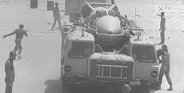 They didn’t have to wait long. On September 22, 1980, Saddam Hussein ordered the Iraqi Army to invade Iran, initiating what would turn into an eight-year nightmare for both nations. Under Soviet doctrine, the SCUD-B was a battlefield support weapon, designed to be used against enemy command and control centers, troop assembly areas, and rear area logistics concentrations. While the Soviets had invented the SCUD-B, as of 1980 the only time the SCUD-B had been used in actual combat was when, on October 22, 1973, the Egyptian Army, with the support of Soviet advisors, fired three SCUD-Bs against Israeli troop concentrations around the Suez Canal in the closing hours of the Yom Kippur War.[4]