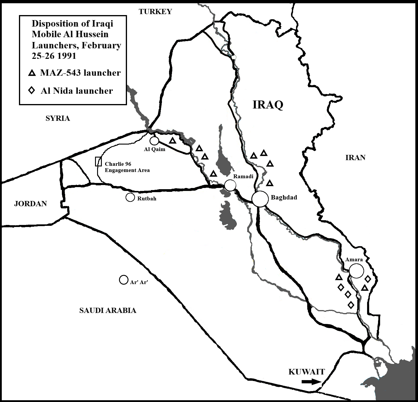 Up until that point, the Iraqi General had been adamant that his forces had operated from a network of support facilities centered around Baghdad, moving west or south as required to launch missiles at their respective targets, but always collapsing on the center when finished. With this model, the likelihood of an Iraqi mobile launcher moving west of the known launch locations in western Iraq was nil.